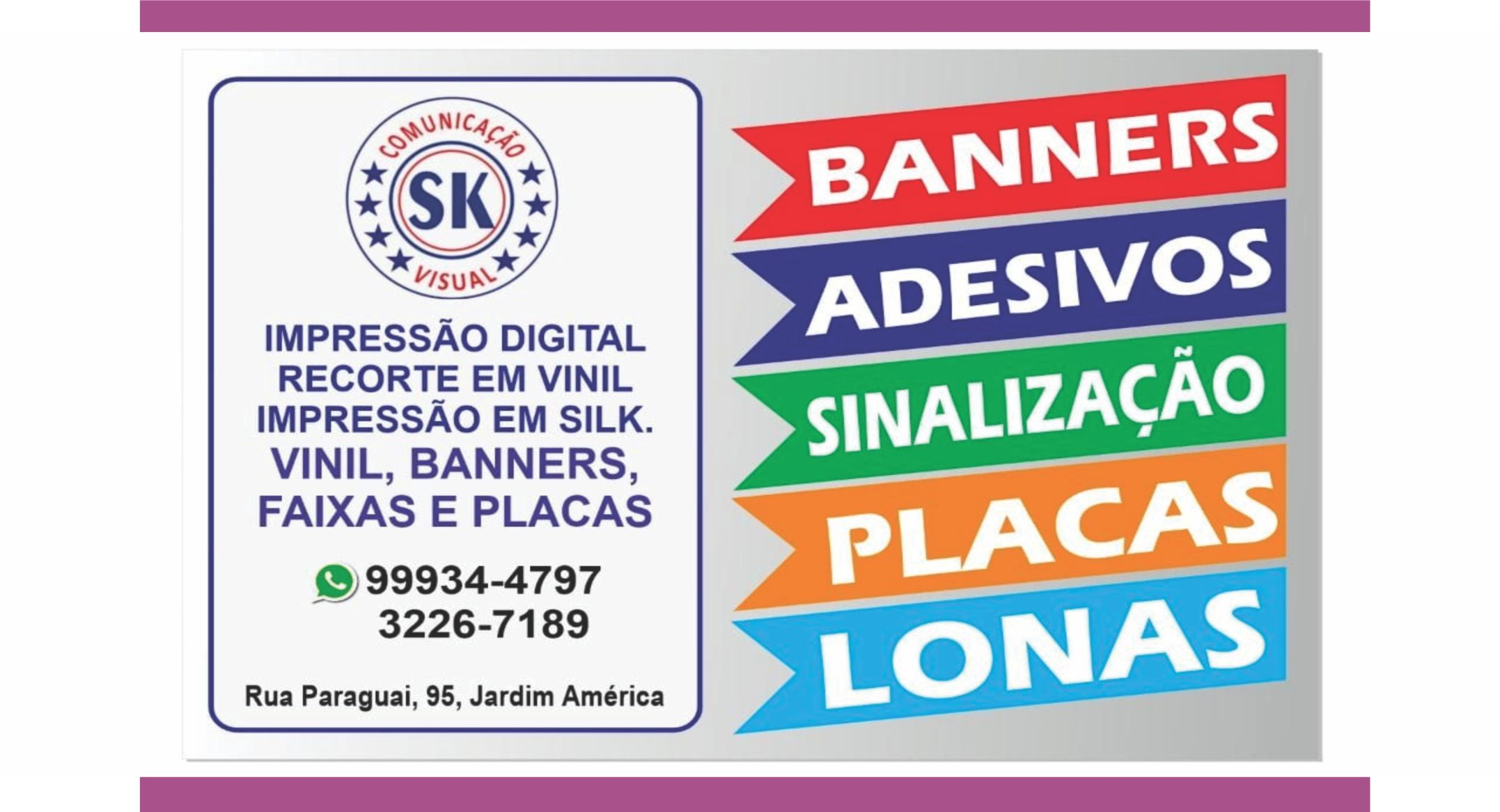 Somos uma empresa com 20 anos de mercado na grande Vitória. Especializada em artigos gráficos visuais e de faxada.